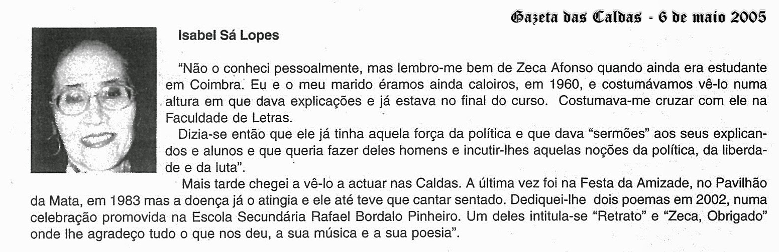 – extrato do documentário “Maior que o Pensamento” de Joaquim Vieira (2ª parte – Combate), onde testemunham alguns cantores que estiveram presentes nesse concerto.