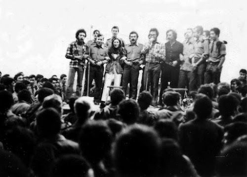 Um amigo, em boa hora, resolveu oferecer-me esta grande imagem, recordação de um “Canto Livre” realizado num quartel da região de Lisboa, em 1975, com Zeca Afonso, Vitorino e um estreante (eu mesmo, o guedelhudo da ponta esquerda). O amigo em causa, era militar nesse quartel e foi um dos que se “arvorou” em cantor e foi connosco para cima do estrado, cantar a Grândola.