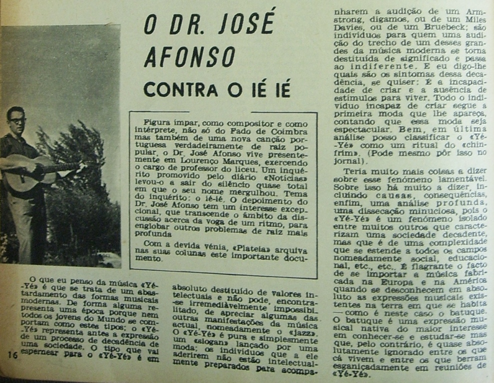 Zeca refere ao batuque como uma referência musical o que não é de estranhar pois grande parte da vivência de Zeca foi em África, Angola primeiro e depois Moçambique. Em 1966 Zeca era professor em Lourenço Marques (Liceu António Enes), e depois foi transferido para a Beira (Liceu Pero de Anaia).