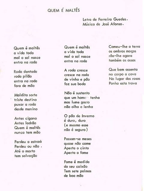 Poema de Ferreira Guedes, musicado por Zeca Afonso e que nunca foi gravado.